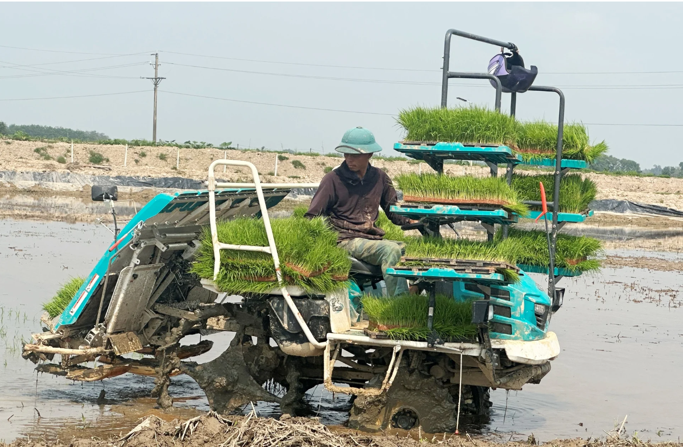 Mạ khay, máy cấy là một trong những giải pháp kỹ thuật được khuyến khích nhân rộng trong canh tác lúa giảm phát thải. Ảnh: Thanh Nga.Ông Trần Hùng, Chi cục trưởng Chi cục Trồng trọt và Chăn nuôi Hà Tĩnh cho rằng, giai đoạn này chính quyền hai cấp bắt đầu đi vào hoạt động ổn định, nhuần nhuyễn nếu các địa phương dành sự quan tâm, phối hợp tốt với ngành chuyên môn, đề án sản xuất giảm phát thải lĩnh vực trồng trọt sẽ chuyển đổi mạnh mẽ nền sản xuất trồng trọt theo hướng thích ứng biến đổi khí hậu, hiện đại hóa công nghệ, nâng cao giá trị nông sản và từng bước tham gia thị trường các-bon, góp phần gia tăng hiệu quả kinh tế cho người sản xuất.