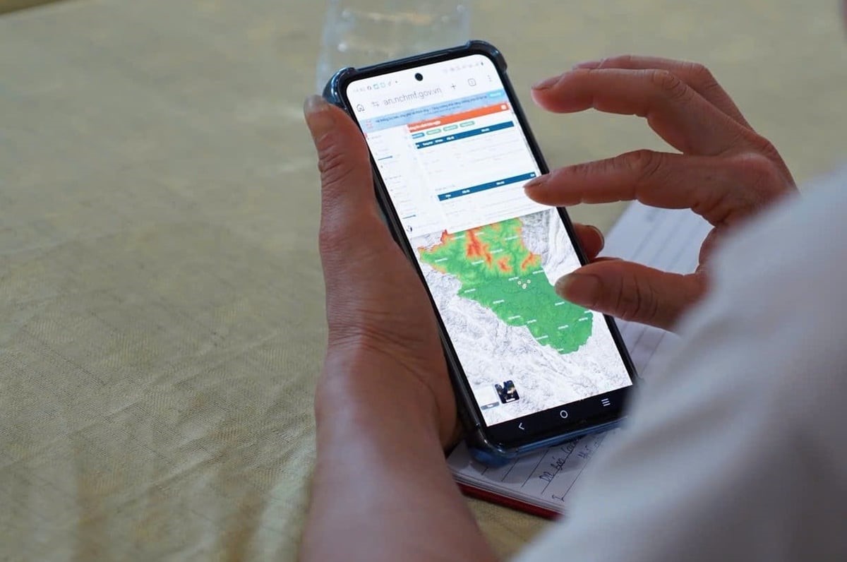 Người dùng có thể truy cập bản đồ rủi ro thiên tai trên nền tảng số trên điện thoại. Ảnh: Hoài Linh.Khi có tình huống mưa lũ lớn hoặc xả lũ hồ chứa, Ban chỉ huy phòng thủ dân sự cấp xã và người dân tại 4 xã vùng dự án phải thực hiện nghiêm các nhiệm vụ đã được phân công. Người dân được khuyến khích thường xuyên cập nhật thông tin qua trang web dự án và các phương tiện thông tin đại chúng để chủ động rà soát mức độ rủi ro đối với gia đình, đồng thời thực hiện các biện pháp phòng tránh theo hướng dẫn của chính quyền địa phương nhằm giảm thiểu tối đa thiệt hại.