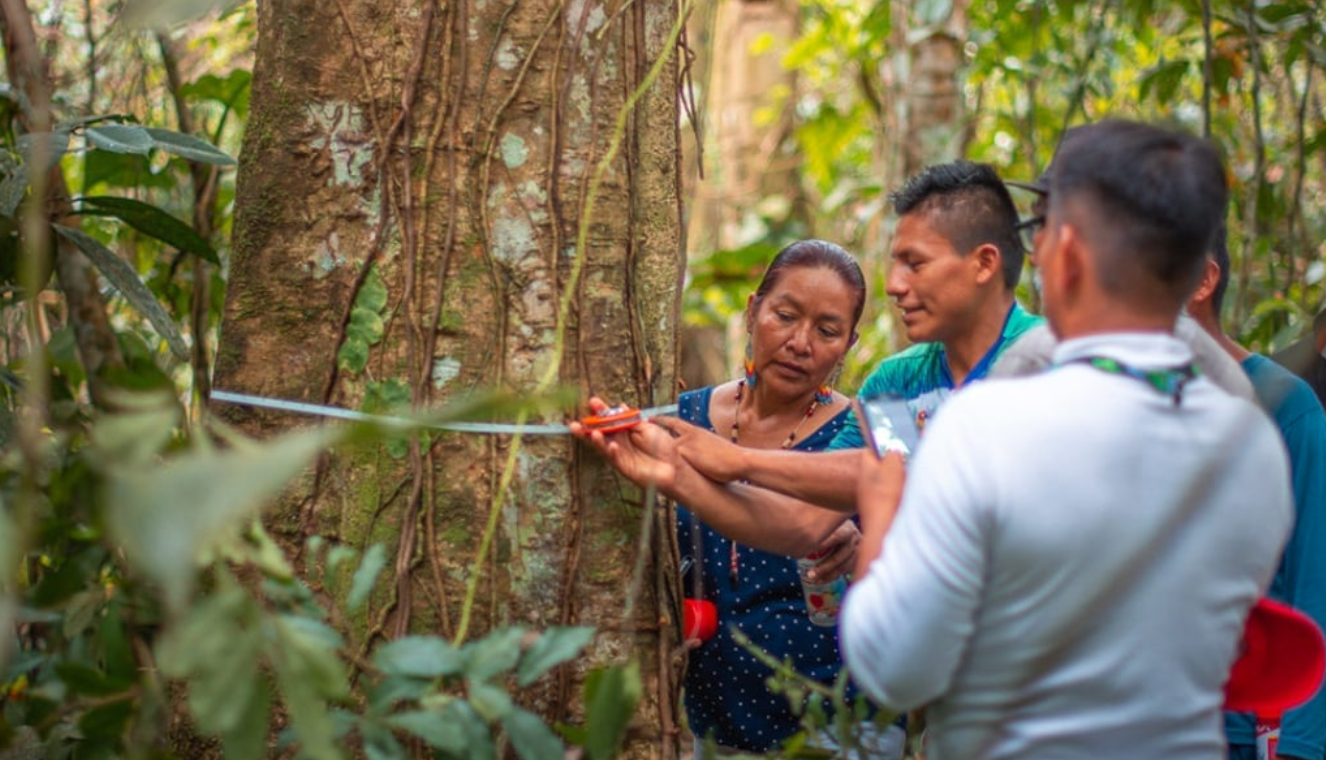 Cộng đồng bản địa tại Amazon tiến hành kiểm tra và đánh dấu cây rừng để theo dõi thay đổi sinh khối và giám sát rừng (một thực hành điển hình trong REDD+ cấp vùng). Ảnh: ProAmazonia.REDD+ là công cụ chiến lược, không xâm phạm quyền đất