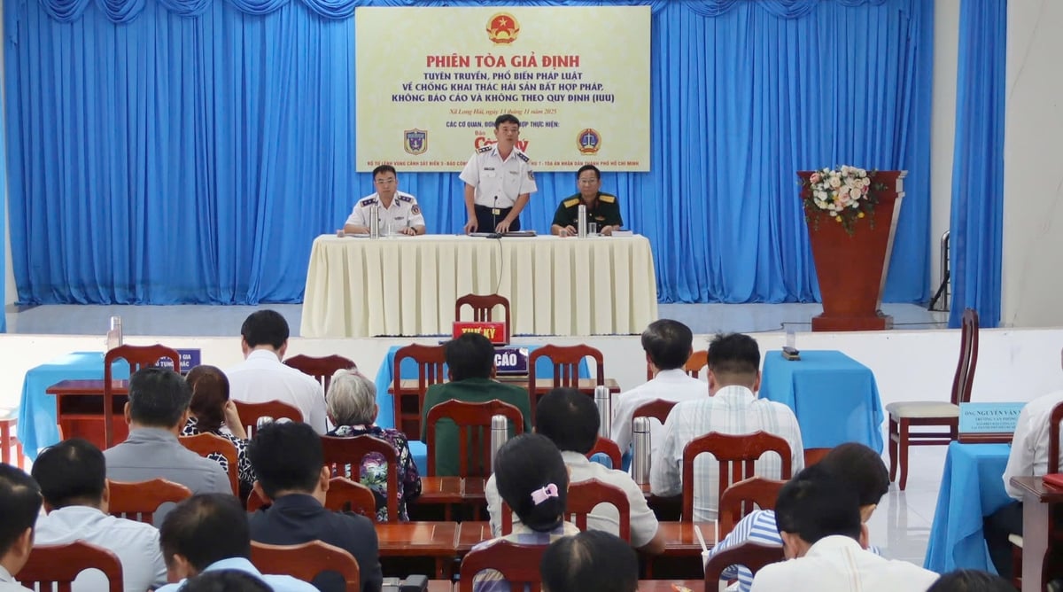 Hưởng ứng “Tháng cao điểm phòng, chống khai thác IUU”, ngày 13/11, Bộ Tư lệnh Vùng Cảnh sát biển 3 phối hợp với Tòa án nhân dân TP.HCM, Tòa án quân sự Quân khu 7 và Báo Công lý tổ chức phiên tòa giả định, tọa đàm pháp luật về chống khai thác IUU tại phường Vũng Tàu và xã Long Hải.
