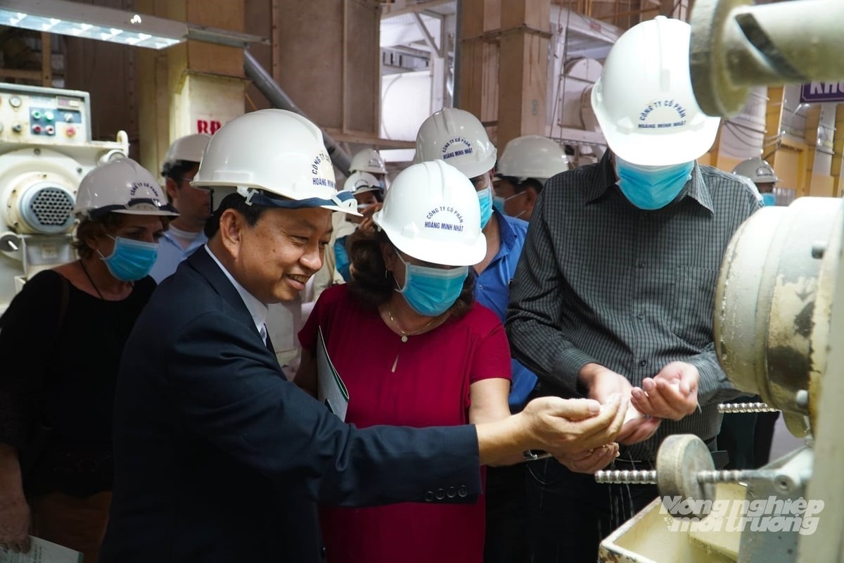 Công ty cổ phần Hoàng Minh Nhật đã và đang cung cấp các loại gạo vào thị trường: Đông Nam Á, Trung Đông, khu vực Châu Á, Châu Phi, Châu Âu. Ảnh: Kim Anh.Theo quy định của EU, các lô gạo thơm nhập khẩu vào thị trường này phải có giấy chứng nhận xác thực chủng loại, nhằm đảm bảo giống gạo nằm trong danh mục theo quy định của Ủy ban Châu Âu (EC). Đây cũng là điều kiện để gạo thơm Việt Nam được hưởng ưu đãi thuế quan theo Hiệp định Thương mại tự do Việt Nam- EU (EVFTA).